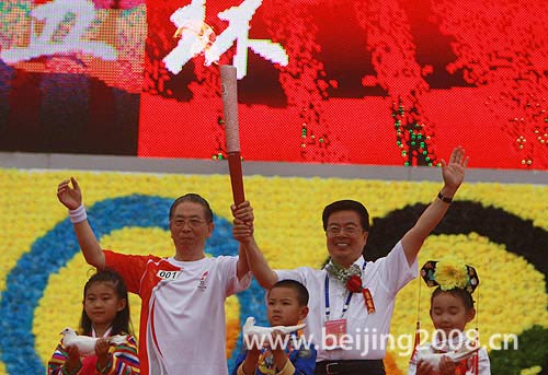 7月15日上午7點18分,隨著首棒火炬手——長春市人大常委會原主任李述從松原市委書記藍軍手里接過火炬,高舉火炬在松原市奧林匹克文化公園起跑,“查干湖畔迎奧運圣火,馬頭琴齊奏激情綻放”北京奧運火炬接力松原站傳遞活動正式開始。2008名馬頭琴手身著蒙古族服裝、數百名格格身著滿族服裝,匯聚在松原市奧林匹克廣場,共同表演,向世人展示蒙古族文化和滿族的魅力,表達蒙古族人民和滿族人民特有的歡快和喜悅之情。110名火炬手將高舉“祥云”火炬,心手相傳,在松原傳遞“更快、更高、更強”的奧林匹克夢想,傳遞松原280萬各族人民對八方賓朋的熱烈歡迎。