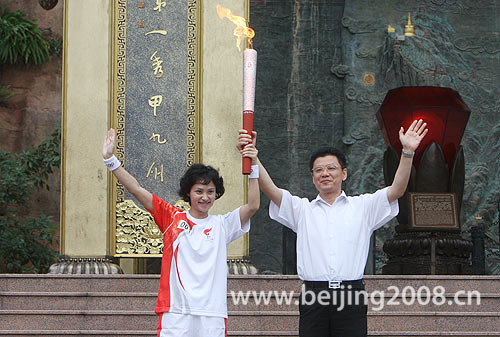 8月4日早上7點(diǎn)38分,北京奧運(yùn)會(huì)圣火開始了在四川樂山市的傳遞,這是四川省境內(nèi)傳遞的第二站。首棒火炬手是兩度獲得奧運(yùn)會(huì)冠軍、開創(chuàng)跳水界“高敏時(shí)代”的“跳水皇后”高敏。