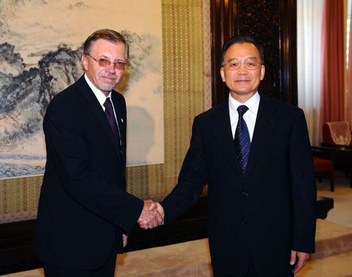 在會(huì)見(jiàn)拉脫維亞總理戈德馬尼斯時(shí),溫家寶表示,中方重視發(fā)展同拉脫維亞的友好關(guān)系,愿在現(xiàn)有良好基礎(chǔ)上,加強(qiáng)雙邊各級(jí)別磋商,發(fā)展互利、平衡的經(jīng)貿(mào)關(guān)系,推進(jìn)交通運(yùn)輸和相關(guān)領(lǐng)域的合作,促進(jìn)青年交流,更好地造福于兩國(guó)人民。