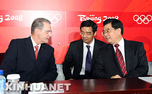 8月24日晚,中國國家主席胡錦濤、國際奧委會主席羅格出席北京奧運會閉幕式。新華社記者 蘭紅光攝