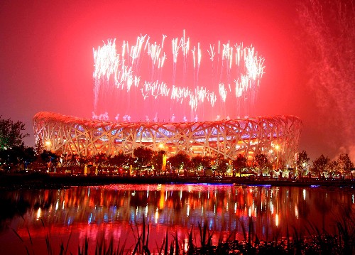 8月24日,第29屆夏季奧運(yùn)會(huì)閉幕式在國家體育場(chǎng)——“鳥巢”舉行。 這是閉幕式上燃放的煙花。 新華社記者 龔兵 攝