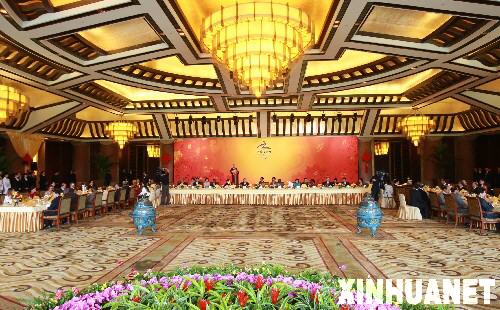 11時50分許,宴會在歡快的樂曲聲中開始,胡錦濤發表祝酒詞。