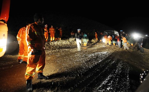 10月7日凌晨,救援人員在全力搶通震中公路。經(jīng)過武警官兵、消防戰(zhàn)士等救援人員近4個小時的全力奮戰(zhàn),截至7日凌晨零時許,通往當雄地震震中的公路打通。目前,各種救災(zāi)物資正不斷運送到災(zāi)區(qū),搶險救災(zāi)工作全面有序展開。新華社記者 普布扎西 攝