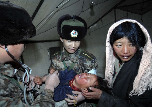 10月7日,西藏軍區(qū)總醫(yī)院的醫(yī)務(wù)人員在給一名藏族孩子檢查身體。10月6日,拉薩市當雄縣發(fā)生6.6級地震。地震發(fā)生之后,西藏各部門迅速投入到抗震救災(zāi)中。目前已有700多名救援人員抵達災(zāi)區(qū)參加救援,救援工作順利進行。受災(zāi)群眾目前已得到妥善安置。新華社記者 覺果 攝