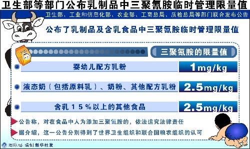 圖表:衛生部等部門公布乳制品中三聚氰胺臨時管理限量值 新華社發