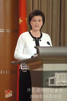 2008年10月30日,外交部發(fā)言人姜瑜舉行例行記者會,就我在蘇丹被綁架人員事件最新進(jìn)展、六方會談、國際金融峰會等答問。