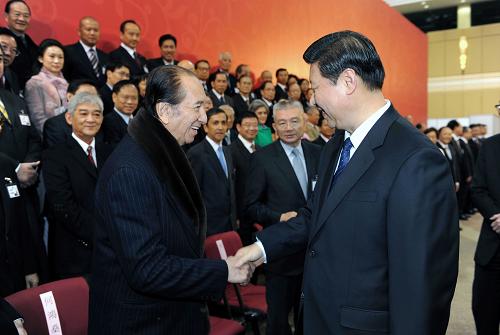 1月10日,國(guó)家副主席習(xí)近平在澳門(mén)東亞運(yùn)動(dòng)會(huì)體育館禮堂親切會(huì)見(jiàn)澳門(mén)社會(huì)各界代表人士。這是習(xí)近平和全國(guó)政協(xié)常委何鴻燊握手。新華社記者 馬占成攝