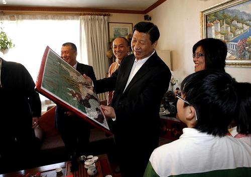 1月10日,國(guó)家副主席習(xí)近平來(lái)到澳門(mén)普通市民胡祖杰家中探訪,了解他們生活、工作情況。這是胡祖杰一家將親手制作的五谷雜糧畫(huà)作回贈(zèng)習(xí)近平。新華社記者劉蓮芬攝