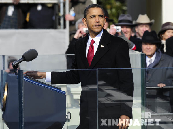 1月20日,美國(guó)總統(tǒng)奧巴馬在就職儀式上發(fā)表就職演說(shuō)。當(dāng)日,奧巴馬在美國(guó)國(guó)會(huì)大廈西側(cè)的露天平臺(tái)上正式宣誓就任美國(guó)第44任總統(tǒng)。 新華社記者張巖攝