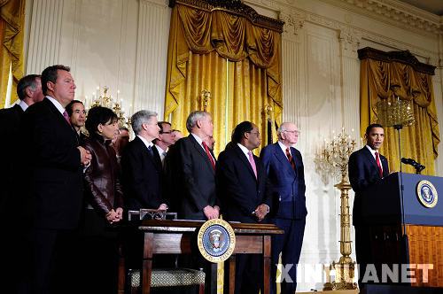 2月6日,美國總統奧巴馬(右一)在白宮發表講話,宣布經濟復蘇顧問委員會正式成立。新華社記者張巖攝