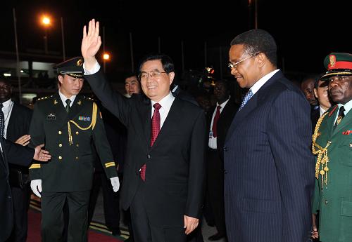 胡錦濤抵達達累斯薩拉姆對坦桑尼亞進行國事訪問