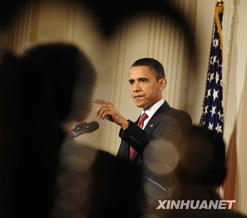 2月9日,美國總統(tǒng)奧巴馬在白宮舉行就職以來的首場新聞發(fā)布會。新華社記者張巖攝