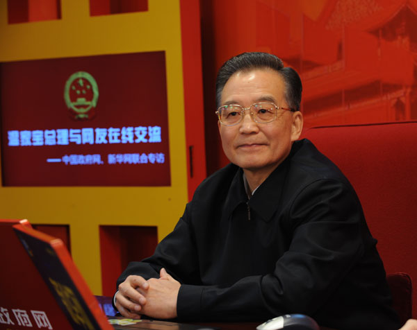 溫家寶同時還接受著新華網的采訪。中國政府網和新華網通過文字和視頻對此進行了全球實況直播。溫總理此次通過互聯網回答全球網民提問的轟動效應堪比一年一度的總理兩會“記招”。