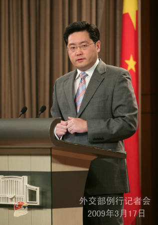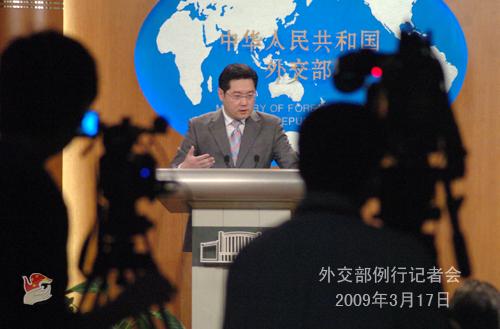 2009年3月17日下午,外交部發(fā)言人秦剛主持例行記者會(huì),就朝鮮總理訪華、六方會(huì)談、巴基斯坦政局等回答記者提問(wèn)。