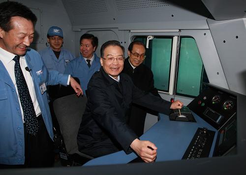 中國北車集團大連機車車輛有限公司始建于1899年,今年恰逢建廠110周年。21日上午,溫家寶來到這家企業的機車車間,走進自主研制的“和諧型”9600千瓦大功率電力機車的駕駛室仔細觀看。他說,我們在電力機車上已經走在了世界前列,這是中國人的驕傲,希望企業全體職工繼續努力,讓“和諧號”不僅跑遍全中國,而且跑遍全世界。