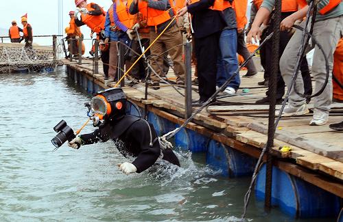 3月22日,戴著面罩、備有腳蹼、橡皮衣、氧氣筒,來自廣東的22歲“蛙人”唐復才,手持電筒和攝像頭躍入岷江,參與位于四川省紫坪鋪水庫的都汶公路廟子坪特大橋水下修復工作。記者了解到,此次修復要求“蛙人”潛入水下,對水深60多米的橋墩底部原有砼進行清洗、鑿毛、堵孔。要在深水下進行這一系列作業,在世界上尚屬首例。