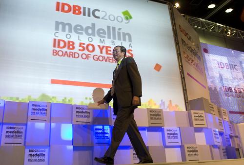 3月28日,在哥倫比亞第二大城市麥德林舉行的美洲開發銀行高峰論壇上,中國人民銀行行長周小川走上發言臺。當天,周小川在美洲開發銀行高峰論壇上發表主題講話時說,中國加入美洲開發銀行將進一步擴大中國和拉美的雙邊合作關系,雙方不斷深化的友好合作將增強中國和拉美國家共同抵御金融危機的能力。新華社發(戴維·德拉巴斯攝)