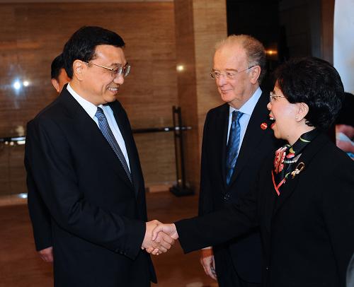 會(huì)前,李克強(qiáng)與世界衛(wèi)生組織總干事陳馮富珍,聯(lián)合國(guó)遏制結(jié)核病特使、葡萄牙前總統(tǒng)薩帕奧,美國(guó)比爾和美琳達(dá)·蓋茨基金會(huì)主席比爾·蓋茨簡(jiǎn)短會(huì)面。