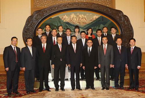4月9日,中共中央政治局常委、全國政協(xié)主席賈慶林在北京人民大會(huì)堂會(huì)見王文杉率領(lǐng)的臺(tái)灣聯(lián)合報(bào)系訪問團(tuán)一行。新華社記者 劉衛(wèi)兵 攝