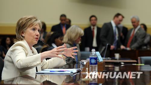 4月22日,美國(guó)國(guó)務(wù)卿希拉里·克林頓在華盛頓出席國(guó)會(huì)眾議院外交關(guān)系委員會(huì)舉行的聽(tīng)證會(huì)。希拉里在聽(tīng)證會(huì)上說(shuō),美方呼吁巴基斯坦政府采取有效措施,阻止塔利班武裝人員和極端分子勢(shì)力在巴基斯坦國(guó)內(nèi)滲透。新華社/法新