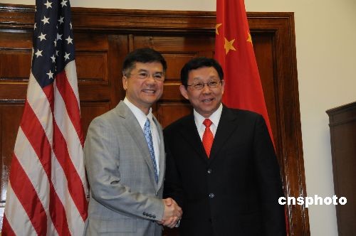 中新社華盛頓4月27日電 (記者 吳慶才)4月27日,中國(guó)商務(wù)部長(zhǎng)陳德銘在華盛頓會(huì)見(jiàn)了美國(guó)商務(wù)部長(zhǎng)駱家輝,雙方就進(jìn)一步發(fā)展中美經(jīng)貿(mào)關(guān)系深入交換了意見(jiàn),并一致強(qiáng)調(diào)共同抵制貿(mào)易保護(hù)主義。