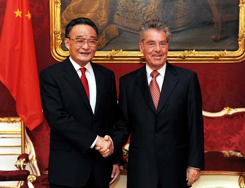 新華社維也納5月15日電(記者 齊紫劍 劉東凱 劉鋼)正在奧地利進行正式友好訪問的中國全國人大常委會委員長吳邦國15日下午在總統府會見奧地利總統菲舍爾,賓主雙方在親切友好的氣氛中進行了深入交談。
