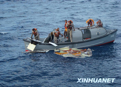 這張巴西空軍6月7日提供的照片顯示,巴西海軍在巴西附近大西洋海域打撈失事的法航A330客機殘骸。當日,巴西空軍和海軍又打撈上3具法航失事客機遇難者遺體和更多飛機殘骸。新華社發
