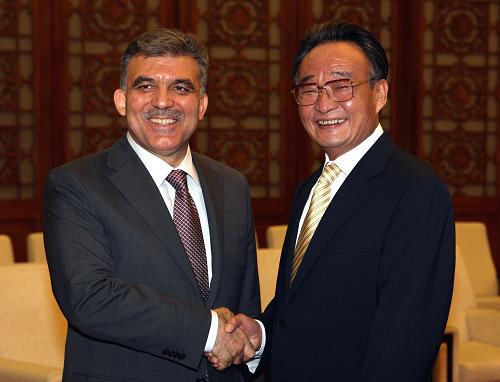 6月26日,全國人大常委會委員長吳邦國在北京人民大會堂會見土耳其總統居爾。新華社記者 姚大偉 攝
