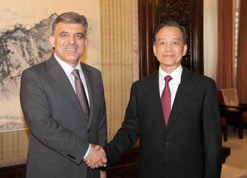 6月26日,國務院總理溫家寶在北京中南海會見土耳其總統居爾。 新華社記者 馬占成 攝