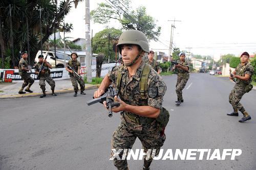 6月28日,在洪都拉斯首都特古西加爾巴,士兵包圍總統塞拉亞的住所。洪都拉斯總統私人秘書雷納當天說,塞拉亞總統當天被軍方扣押表明洪都拉斯已經發生軍事政變。新華社/法新