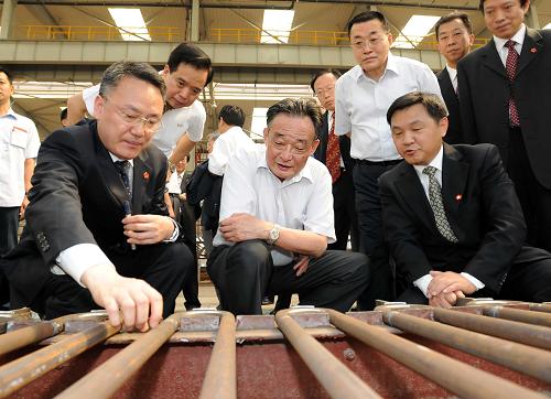 吳邦國委員長來到奇瑞集團(tuán)的生產(chǎn)車間和汽車研究院,詳細(xì)了解汽車產(chǎn)業(yè)的發(fā)展、調(diào)整與升級問題。公司負(fù)責(zé)人介紹,他們正在進(jìn)行三大調(diào)整:一是在出口下降的情況下著力擴(kuò)大內(nèi)需。在國家政策支持下,今年1至5月銷量同比增長了60%,4至5月同比增長了148%。這兩年他們還在國外建了6條生產(chǎn)線,逐步實現(xiàn)由整車出口向投資、技術(shù)、設(shè)備、零部件出口的轉(zhuǎn)變;二是從以低檔車為主向中高檔車邁進(jìn),推出了一系列適應(yīng)市場需要的新車型,并自主研發(fā)了自動變速箱;三是從傳統(tǒng)燃油汽車向開發(fā)電動、混合動力等新能源汽車調(diào)整。吳邦國對奇瑞公司在市場壓力下主動調(diào)整取得的成效表示滿意,勉勵他們堅持自主創(chuàng)新,鑄造世界名牌。