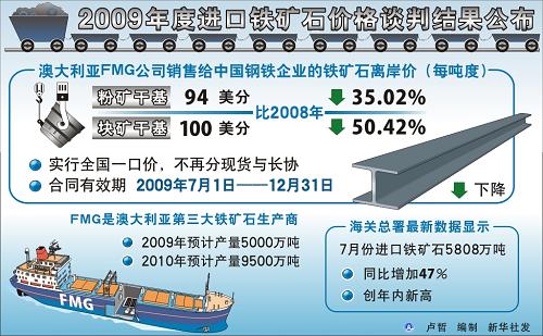 圖表:2009年度進(jìn)口鐵礦石價格談判結(jié)果公布 新華社發(fā)