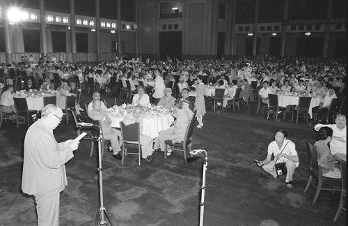 1984年6月1日,中共中央統(tǒng)戰(zhàn)部、全國人大民族委員會、國家民族事務(wù)委員會在人民大會堂聯(lián)合舉行茶話會,慶!吨腥A人民共和國民族區(qū)域自治法》通過(資料照片)。新華社 發(fā)