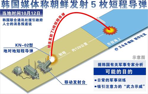 圖表:韓國媒體稱朝鮮發(fā)射5枚短程導(dǎo)彈 新華社發(fā)