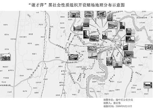 謝才萍團伙所開賭場分布圖。 重慶市公安局供圖