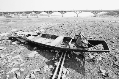 在湘江暮云段,因為枯水而擱淺在江心的船舶,至少綿延5公里長。長沙市水利局工作人員陳集中說,“這場無法形成徑流的小雨,根本解決不了湘江枯水的問題。”