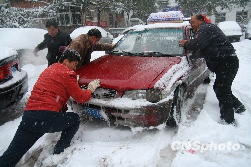 河北方面,石家莊市的小學將放假一天,各單位正組織人員上街掃雪。河北邯鄲市交通局負責人表示,不管天氣如何變化,絕不允許出租車“趁雪漲價”。