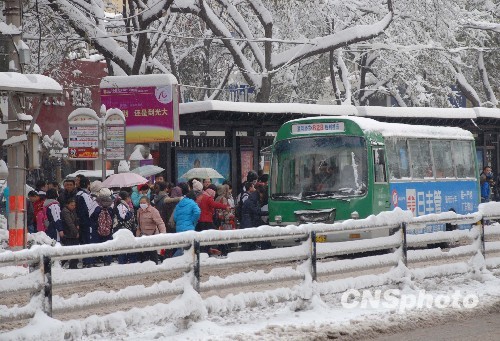 從11月9日至11日,山西大部地區(qū)出現(xiàn)強降雪天氣,太原24小時降雪量達36.7毫米,是1951年有氣象記錄以來的最大降雪。山西省氣象局啟動暴雪災害一級應急響應,山西省副省長劉維佳表示:此次暴雪災害給山西的交通、農業(yè)、林業(yè)、電力等相關部門造成了不同程度的影響。圖為太原市居民出行受暴雪的影響,只能選擇步行或乘坐公交汽車。 中新社發(fā) 張雷杰 攝