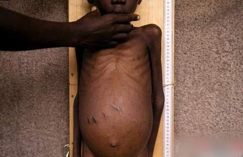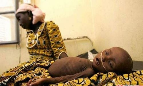 一名在醫(yī)院接受治療的嚴(yán)重營養(yǎng)不良的烏干達(dá)男孩。