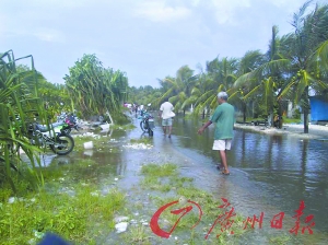 “天黑后千萬別出來跑步,因為一不小心就會跑到海里去,”記者在閑逛時竟然碰到了一個來自廣東的老鄉老羅,他警告記者,“圖瓦盧太小、地形又太平坦,漲潮時很多地方都會被海水給吞沒,甚至包括島中央的馬路!彼勸告記者別穿皮鞋,大潮時隨便一個海浪撲過來,就會直接沖過整個海島流到另外一邊,整個人都會被海水打濕。
