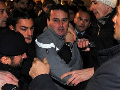 據報道,貝盧斯科尼13日晚間受邀在米蘭參加一個集會時遭一名男子毆打,致面部出血,之后被迅速送往醫院。73歲的貝盧斯科尼到達醫院時一直在說“我沒事、我沒事”。