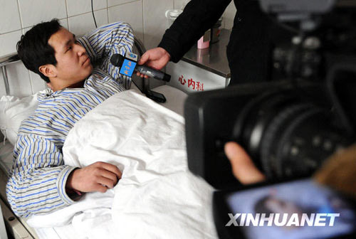 1月5日,一名在事故中中毒較輕的工人在醫(yī)院接受媒體記者采訪。新華社記者 楊世堯 攝