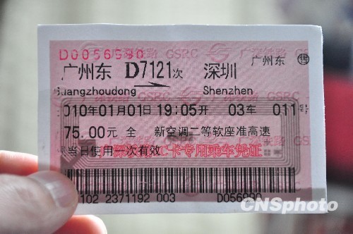 2010年1月22日消息,今年春運鐵路部門在廣鐵集團、成都鐵路局部分車站試行火車票實名制,在深圳工作的孟軍寧成為預訂中國首張實名制火車票的旅客。 中新社發 呂雪良 攝