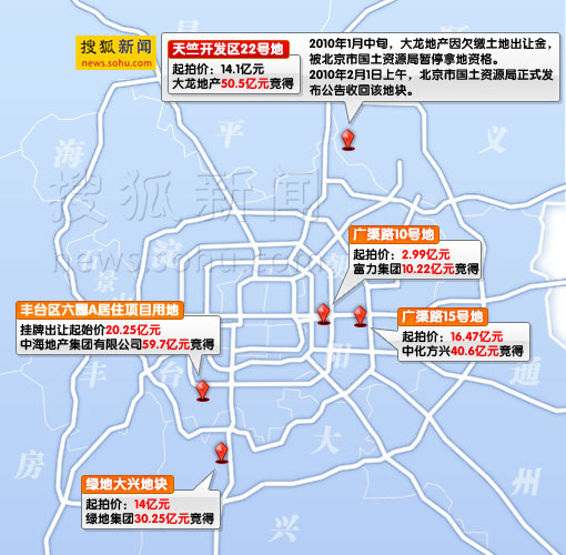 去年11月20日,手舉28號(hào)牌的大龍公司負(fù)責(zé)人以50.5億元拍得順義地塊。2個(gè)多月后,該地塊因欠繳地價(jià)款被政府收回。