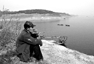 均縣鎮蓮花池村的陳永兵在碼頭等待兒子歸來,他們一家今年3月也要移民到宜城鄧林農場。孔璞 攝