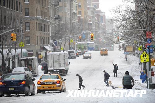 紐約市部分地區(qū)26日中午時分積雪厚度超過53厘米,預計降雪還將繼續(xù)。