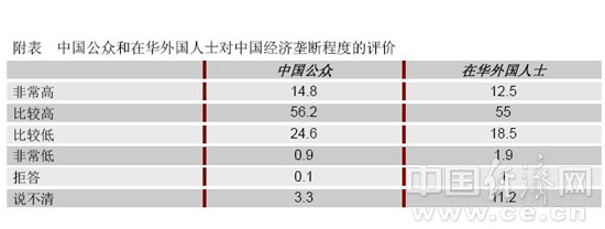 中國發(fā)展研究基金會秘書長盧邁表示,雖然能看出國人和在華外國人士對中國未來的高度認同,但國人對未來表現(xiàn)得太樂觀。他認為國外一些觀點已經(jīng)在擔(dān)心中國目前有點傲慢,過于自信,高層也在不斷提醒要注意中國現(xiàn)在還有一億多人生活在貧困線以下,因此要對現(xiàn)實情況有清醒的判斷。(記者 郭少峰)