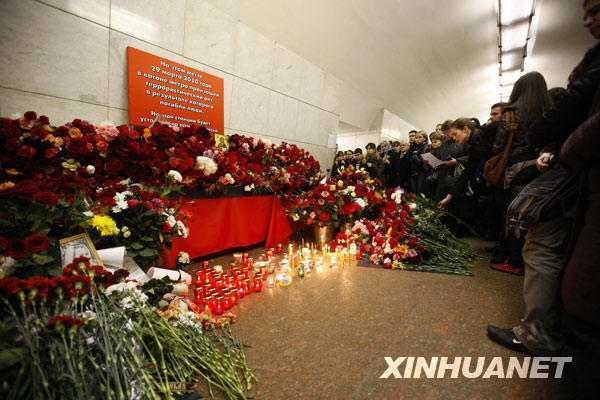 3月30日,在俄羅斯首都莫斯科曾發(fā)生爆炸的盧比揚(yáng)卡地鐵站內(nèi),一些市民為地鐵爆炸案的遇難者默哀。當(dāng)日為莫斯科哀悼日,許多莫斯科市民前往事發(fā)地鐵站獻(xiàn)花、默哀,悼念死難者。莫斯科時(shí)間3月29日上午,位于莫斯科市中心的盧比揚(yáng)卡地鐵站和文化公園地鐵站接連發(fā)生爆炸。據(jù)俄官方最新公布的數(shù)據(jù),爆炸造成至少38人死亡、63人受傷。 新華社記者魯金博攝
