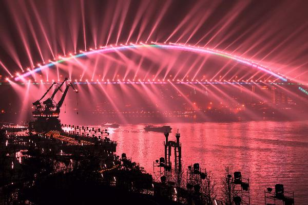 4月9日晚,上海盧浦大橋燈光璀璨。新華社發(fā)(鄭憲章 攝)