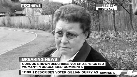 布朗當天前往英格蘭西北部羅奇代爾與選民見面,在人群和媒體重重包圍下與吉莉恩·達菲交談大約5分鐘。